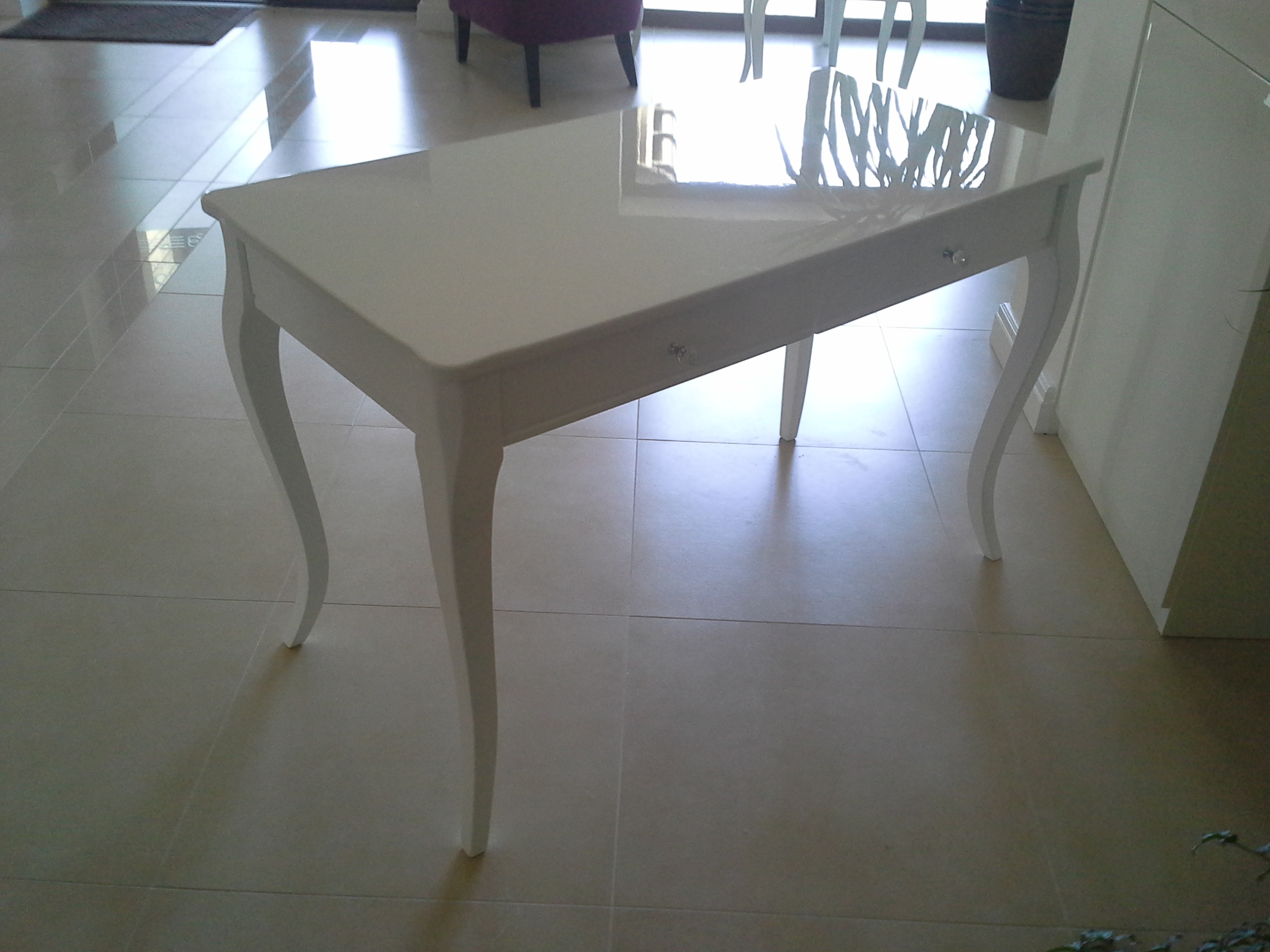 Stylowe biurko w klasycznym, ponadczasowym stylu, które doskonale sprawdzi się zarówno w domowym gabinecie, jak i w pokoju młodzieżowym czy sypialni. Biała, gładka powierzchnia blatu nadaje wnętrzu lekkości i elegancji, a delikatnie gięte nogi podkreślają subtelny, dekoracyjny charakter mebla. Możliwość wykonania w innym kolorze.