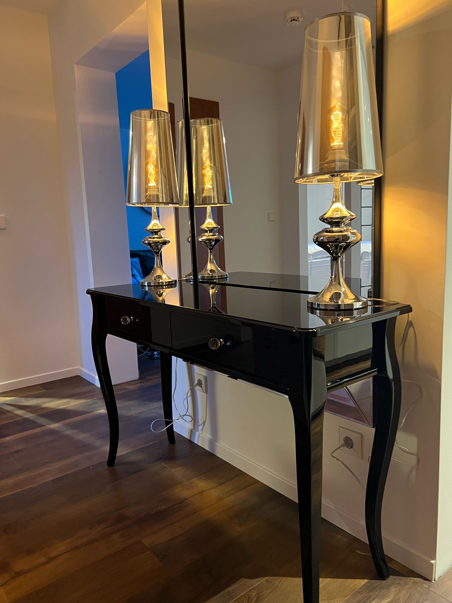 Konsola glamour z dwiema szufladami – luksus, który przyciąga spojrzenia