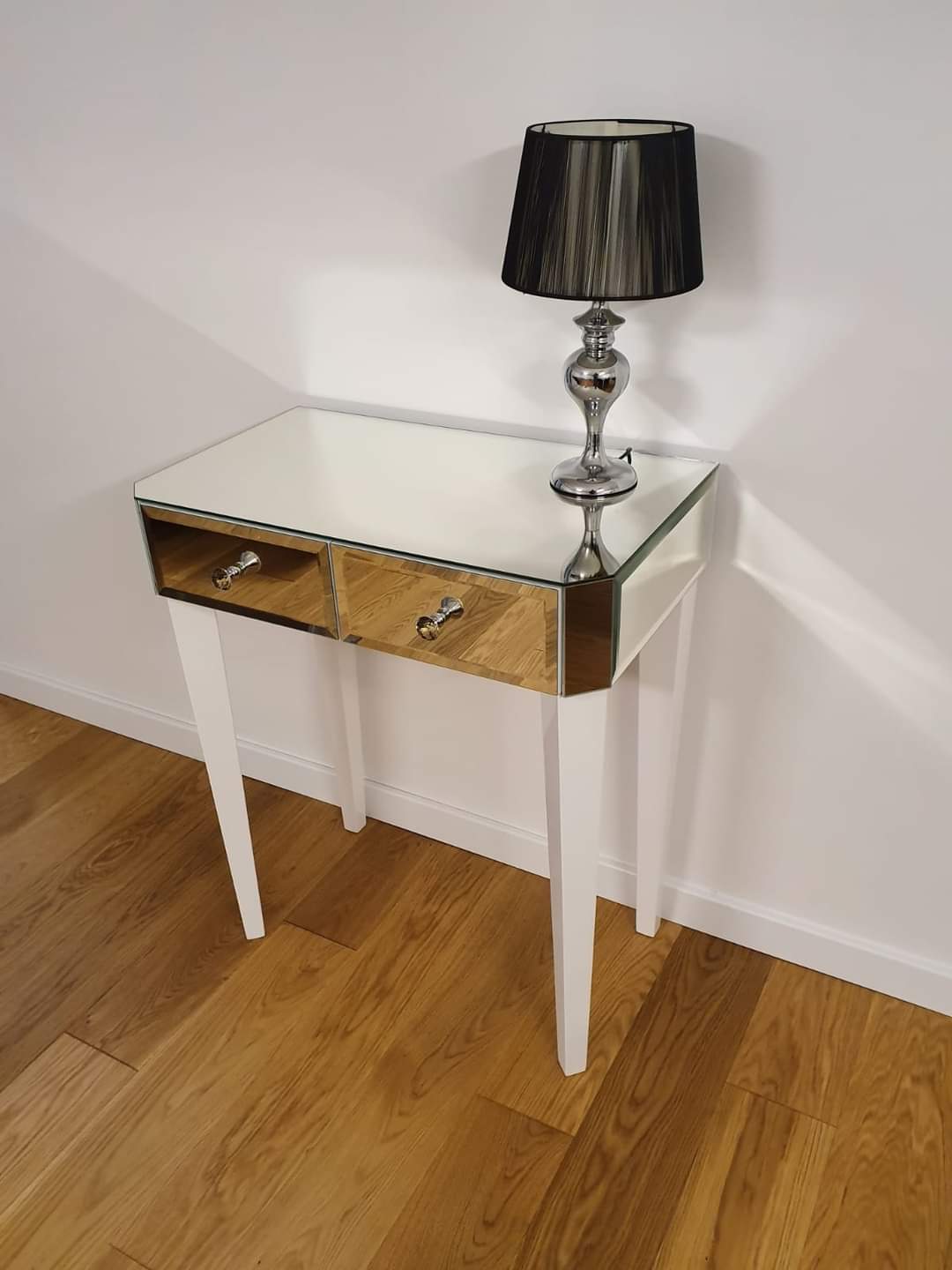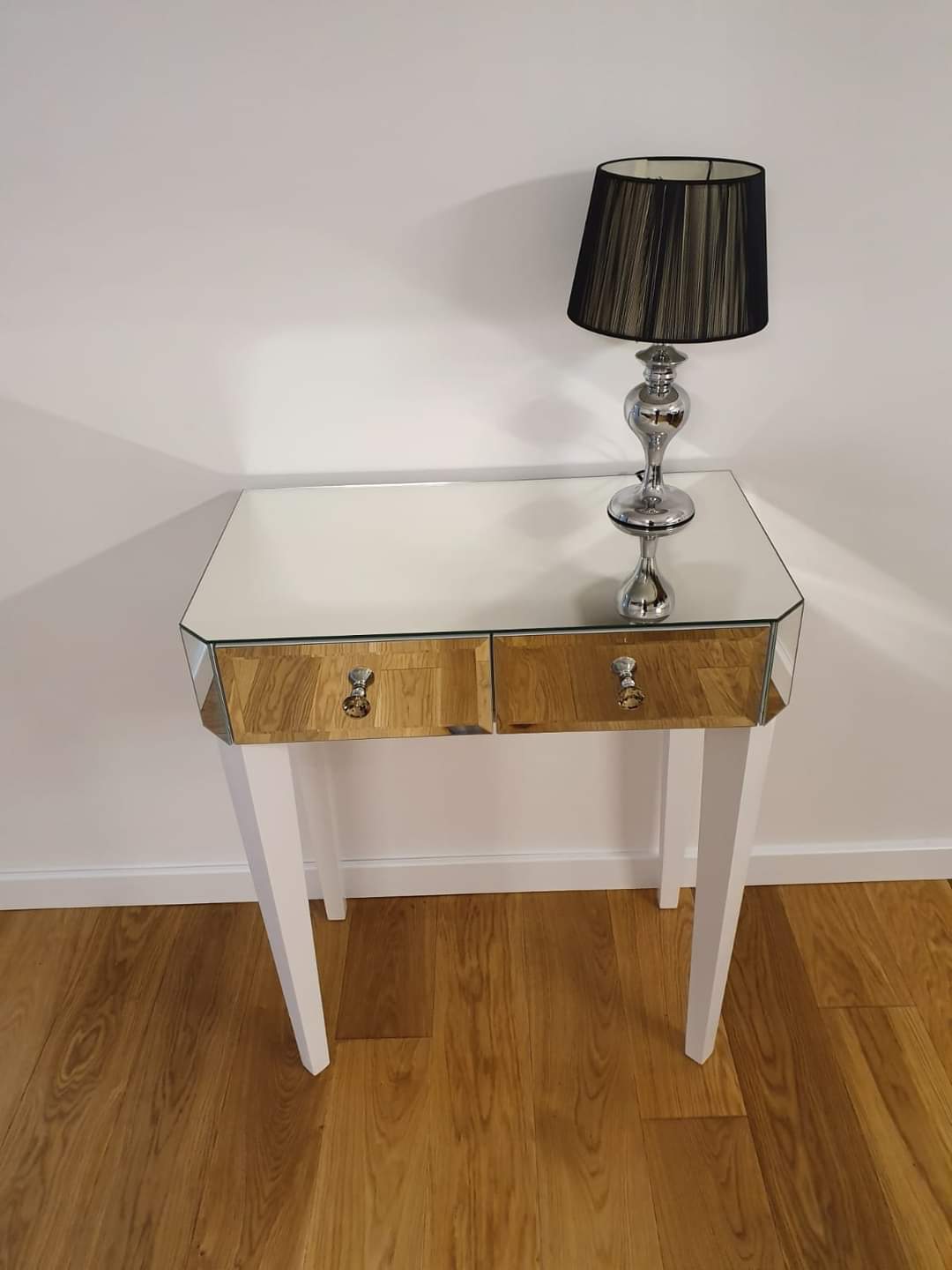 Lustrzana konsola z dwiema szufladami – elegancka konsola glamour do przedpokoju
