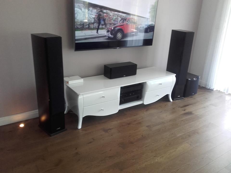 • Układ: szuflady + otwarta półka na sprzęt RTV