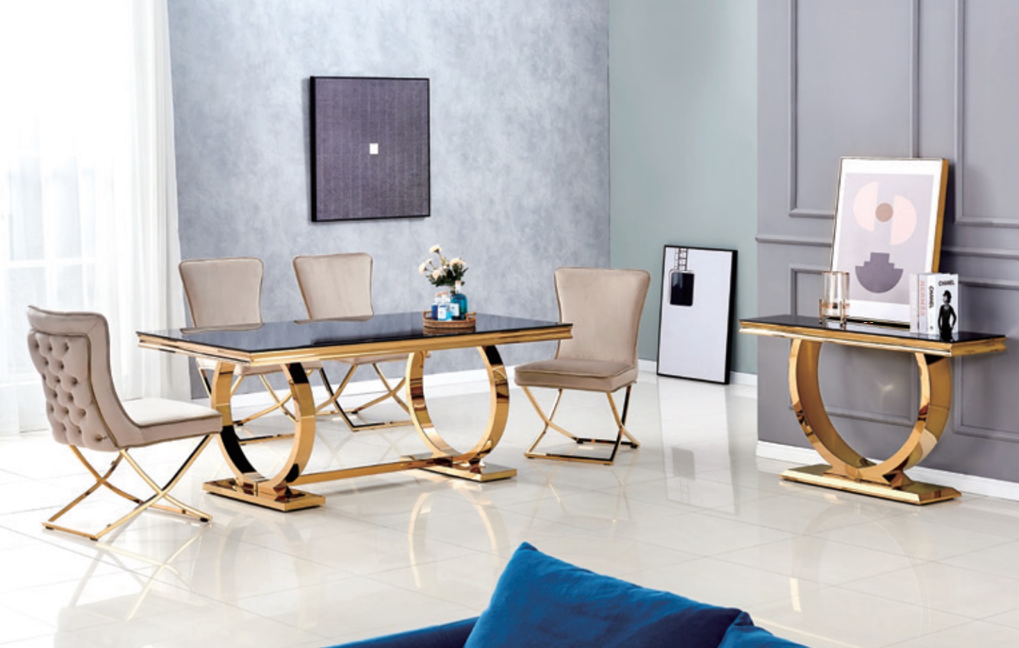 Złoty stół glamour.